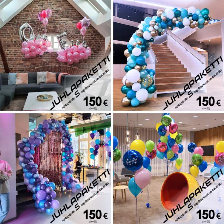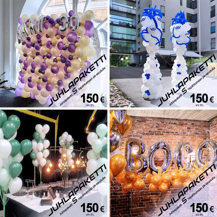 Ei hätää, tällaisia tilanteita varten olemme luoneet kolme juhlapakettia: S, M ja L
